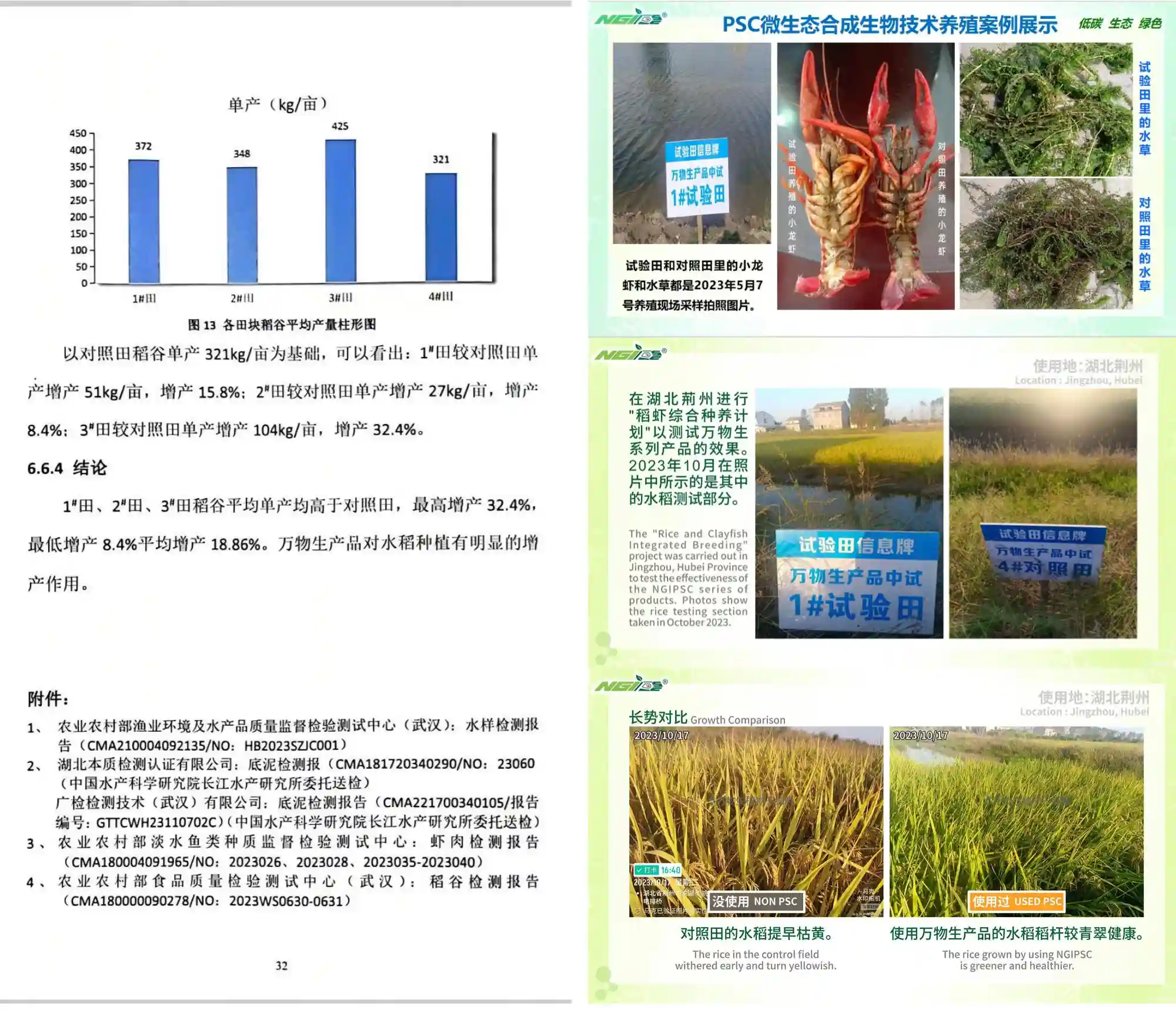 她表示:近几年,我们委托湖北省水产科学研究所开展《植物干细胞微生态合成生物产品进行稻田养虾综合种养试验》,数据显示,施用植物干细胞微生物系列产品几个月后,试验田的土壤、尾水质量得到明显改善,COD(化学需氧量)和BOD(生化需氧量)等指标均达到了排放标准。更令人惊喜的是,水稻、鱼虾的生长环境得到了改善,水稻最高增产32%,平均产量提高了18%,并且虾肉品质更嫩更佳,市场竞争力增强。同时,使用植物干细胞微生物系列产品相较于传统的物理化学处理方式,成本远低且操作简便,易于维护。我们希望充分挖掘植物干细胞技术在农业和水产养殖生产中的应用潜力,建立小龙虾、大闸蟹等水产品标准化养殖方案。