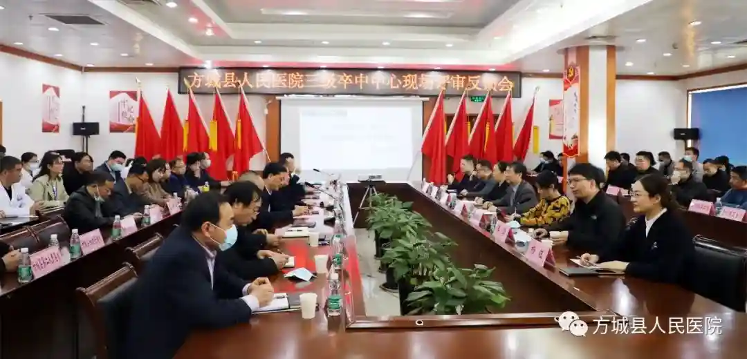 3月22日,河南省三级医院卒中中心专家组对我院卒中中心进行预评审验收暨方城县脑卒中质量控制中心成立大会。