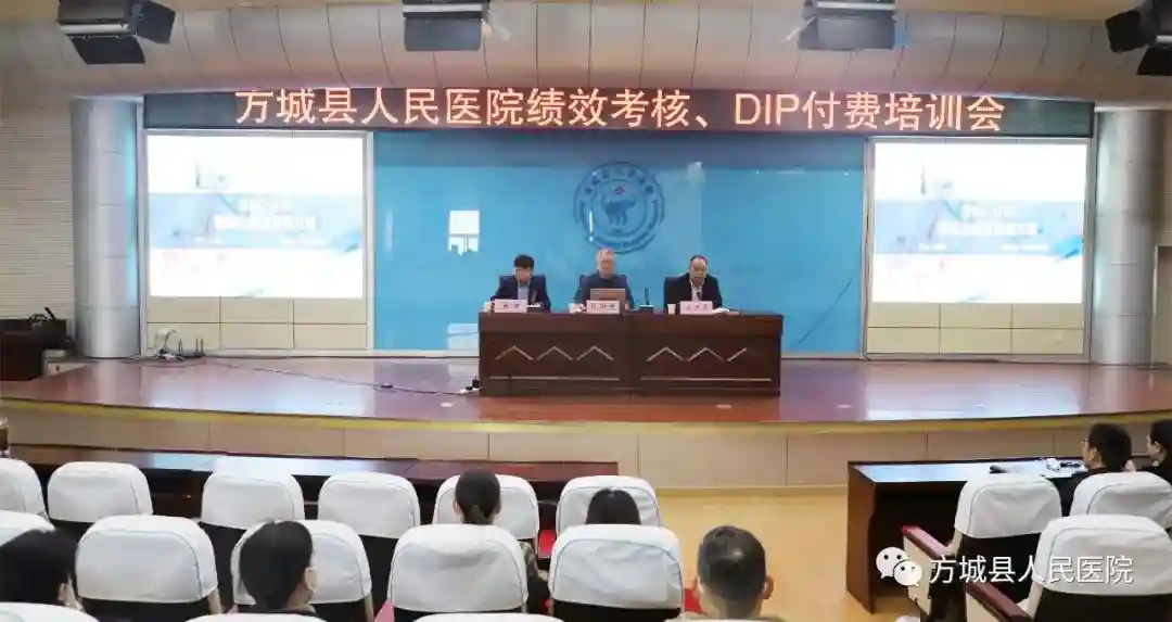 4月26日,我院在学术报告厅召开方城县第一医疗健康服务集团绩效考核、DIP付费培训会。