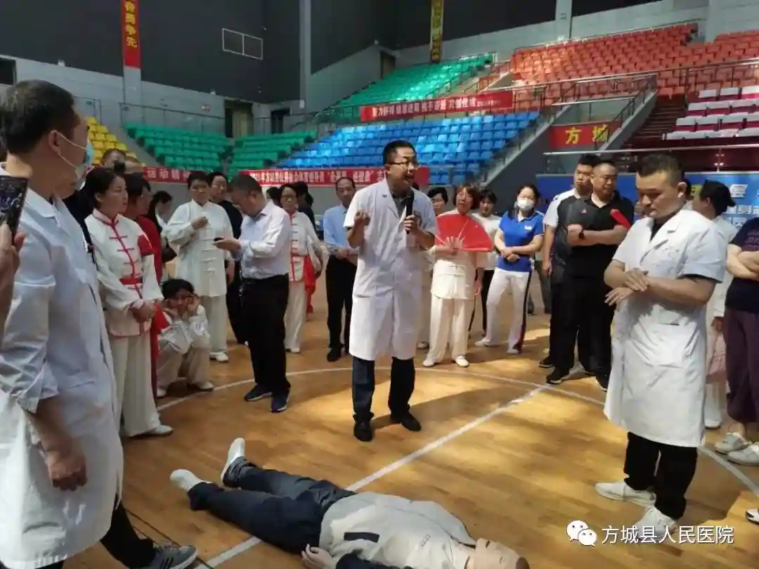 5月19日上午,我院组织骨干人员走进县体育馆开展“应急救护”安全教育宣传活动。