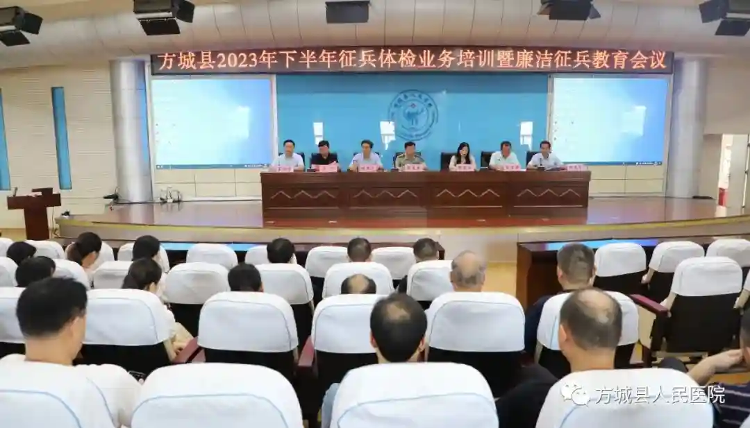 8月11日,方城县2023年下半年征兵体检业务培训暨廉洁征兵教育培训会在我院学术报告厅召开.