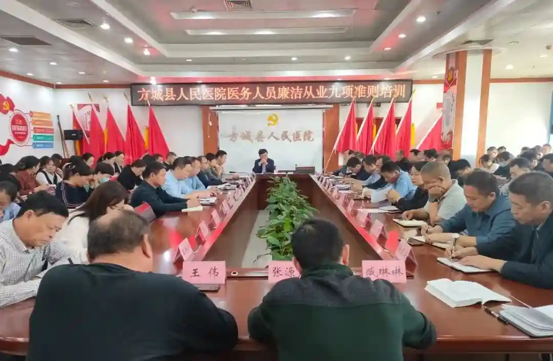 10月30日下午,我院在六楼会议室召开《医疗机构工作人员廉洁从业九项准则》专题培训会。
