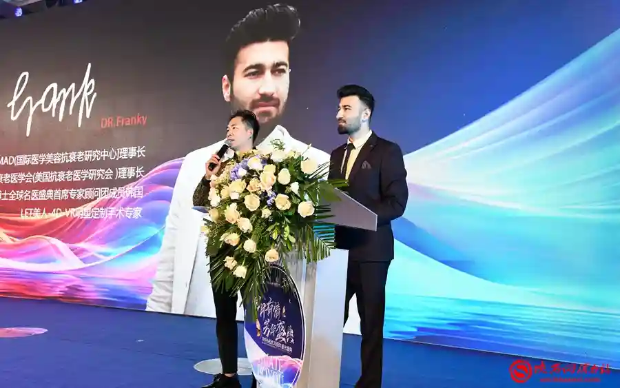 外籍专家弗兰克教授宣布国际医学美容抗衰老研究院落地渭南并授牌。记者许艾学摄