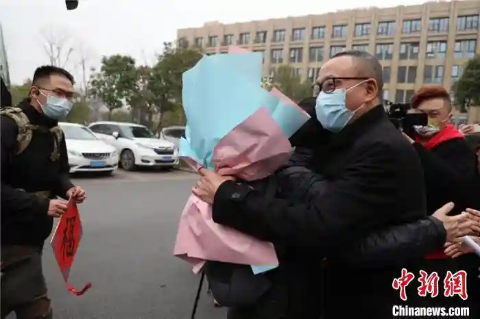 人群中,穿着“黑色战袍”的医疗队领队、浙江医院副院长陈新宇一出场便被鲜花簇拥,浙江医院院长陈军上前给了她一个大大的拥抱。