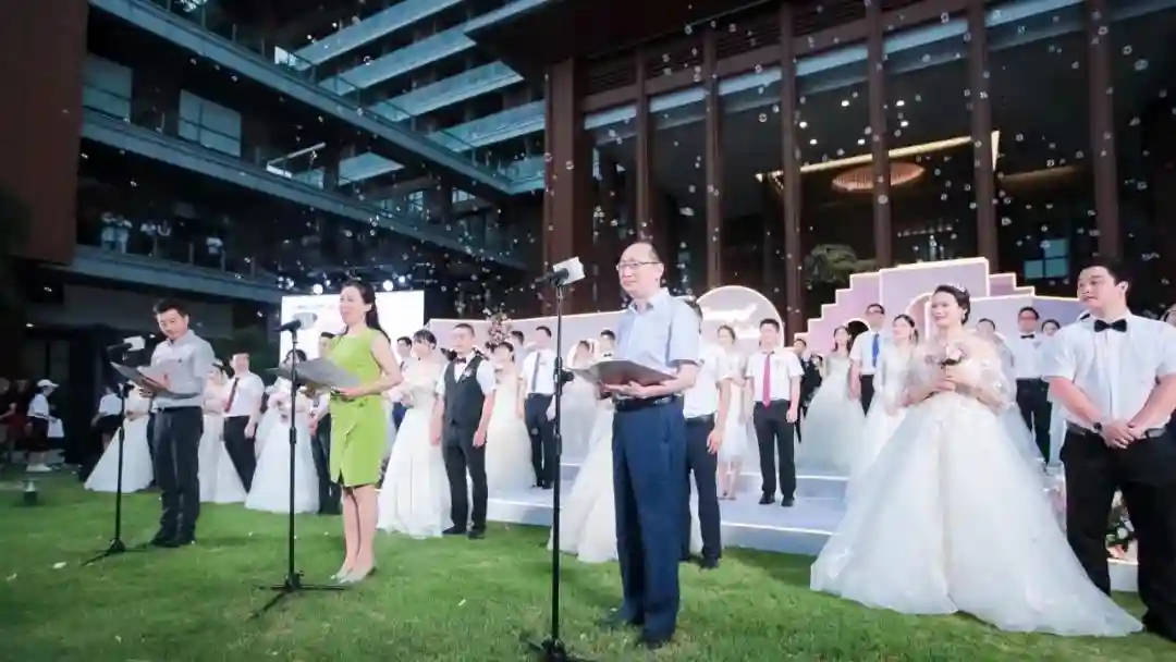 特别的婚礼给特别的抗疫英雄,特别的婚礼还设置了特别的环节。海南博鳌乐城国际医疗旅游先行区管理局局长顾刚为30对新人证婚。顾刚提到,新冠肺炎疫情爆发以后,乐城先行区同海航集团也一直以实际行动支援抗疫战场,乐城派出全国唯一一个以医疗园区为单位的援助队,海航先后53次包机运送6495名医护人员往返抗疫战场,运输超6500吨,397041件防疫物资驰援全球21个国家,总投入超过8584万元。“所以,我们都是抗疫一线的战友。而以整个医疗园区的名义为30对抗疫医护新人主办集体婚礼,这在全国应该也是独一份。在乐城办婚礼,你们一定会一生携手、一生幸福。”