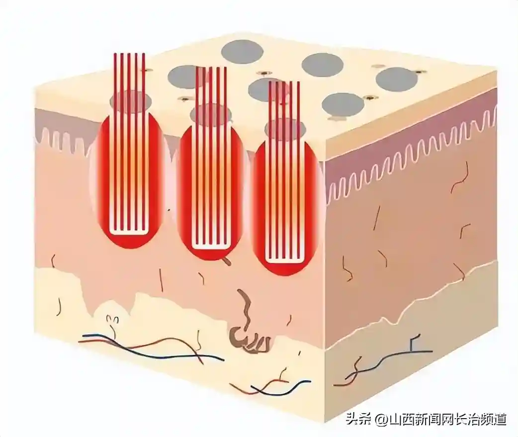 二氧化碳点阵激光原理是一种光热分解理论。它将一束激光分解为多束激光,在表皮形成一个点阵激光和间隔组成的加热区,每个激光作用点可直接穿透至真皮层。激光的热效应可以刺激胶原蛋白合成,从而达到填平痘坑的目的。