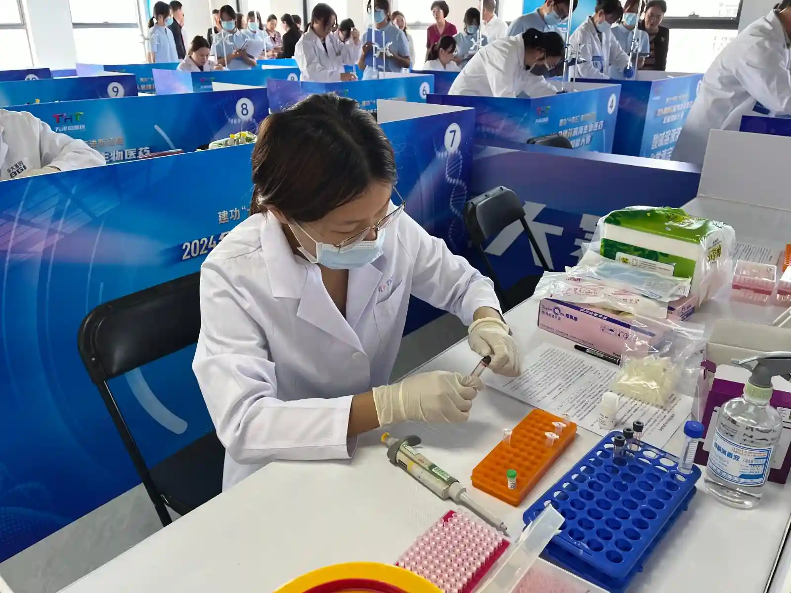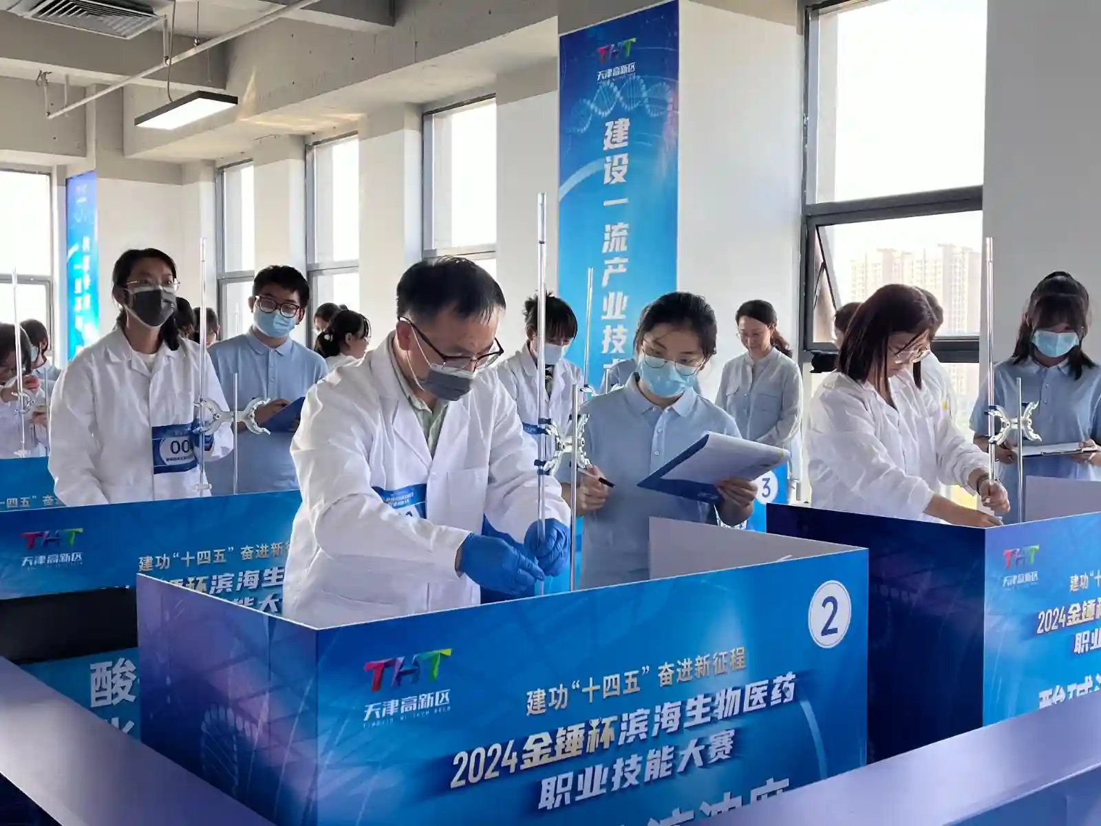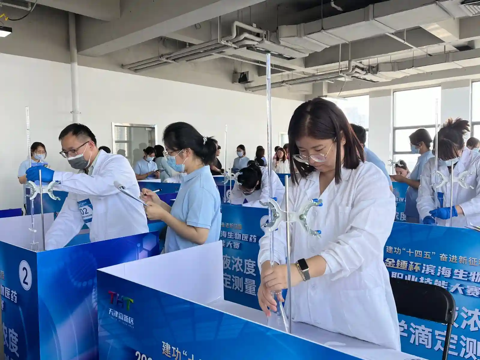 大赛现场,选手们时而轻轻晃动手中的试管、时而有条不紊地添加试剂,一场高水平的职业技能比拼就此拉开帷幕。本次大赛自今年8月启动,面向滨海新区生物医药产业的从业者,设立了化学溶液酸碱浓度滴定测量、液态样本实验用定量加样、血液基因组DNA手工提取和病原鉴定形态学化学染色四个比赛项目,综合考核职业基本功和前沿技术。