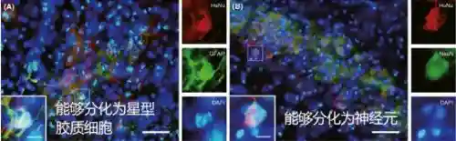 郭教授的团队还发现,人源神经干细胞能够在3-24小时之内广泛分布于大脑损伤区,持续42天的疗效观察证明神经干细胞可长期存活于大脑(图1);并完全自主和有效的分化为神经元和星形胶质细胞,用以弥补受损的神经细胞(图2);能够很好的修复因缺血缺氧导致的大脑组织缺失和白质损伤(图3)。