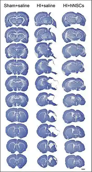 该文章中的行为学研究表明,人源神经干细胞治疗能够充分改善缺血性脑病新生幼鼠的运动、平衡、神经反射、协调、学习记忆及社交选择能力。研究包括蛋白调控、细胞分化、组织修复和行为学纠正等诸多方面,证明人源神经干细胞可以真正缓解并改善新生幼鼠缺血缺氧性脑病。