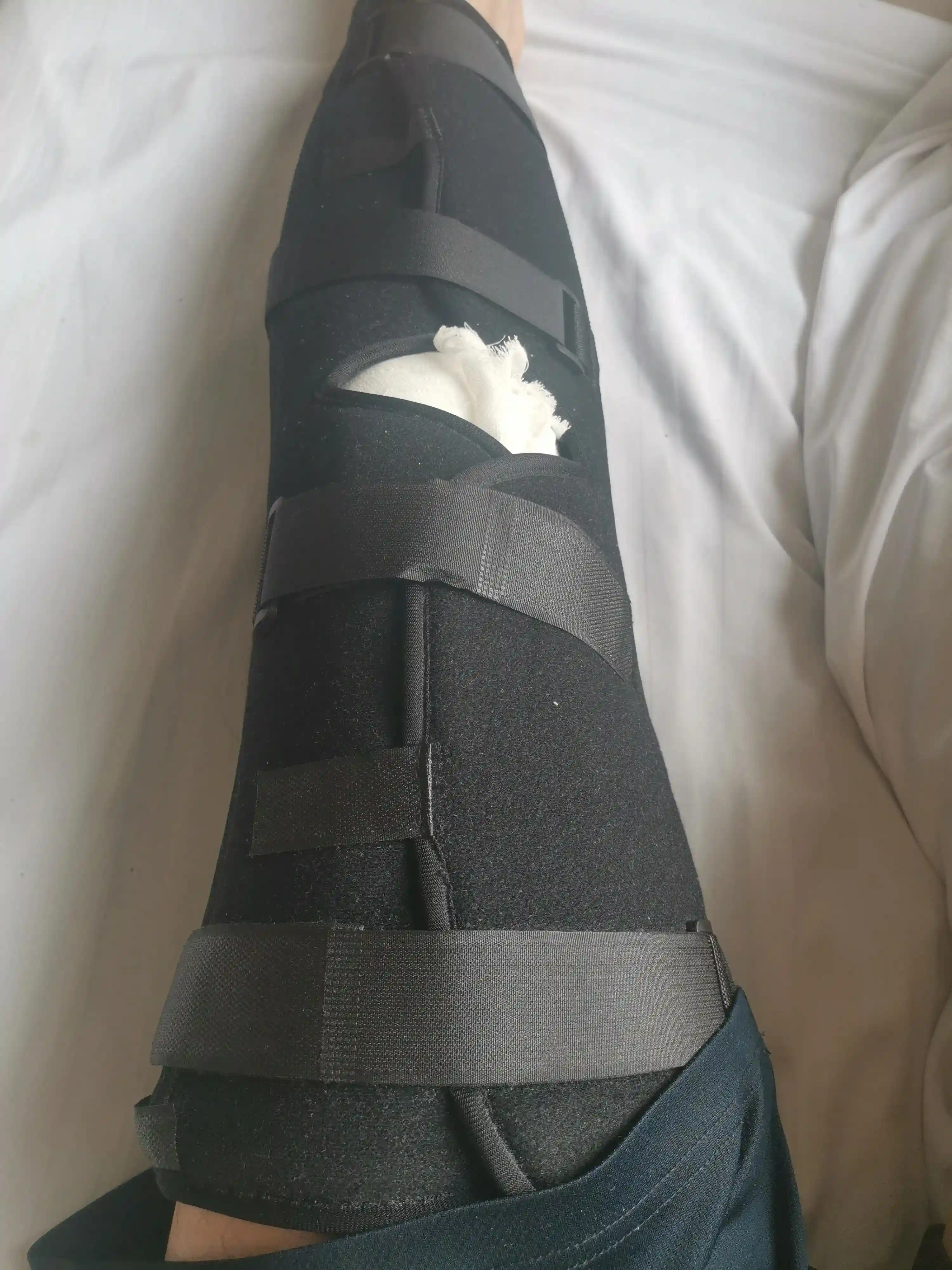 以下是我伤口治疗的样子。夹板每天可以自己打开透透气,比较方便。