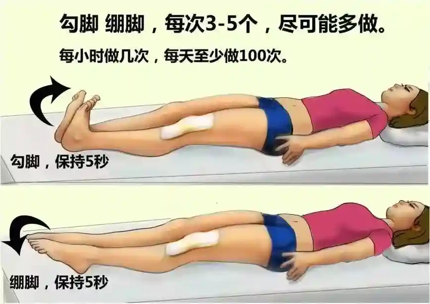 术后第四天开始,吊水数量上减了,由3+3调整成2+2了。全天没事就在病床上继续脚泵、抬高腿和蹬腿三个动作,持续恢复肌肉力量,防止肌肉萎缩。