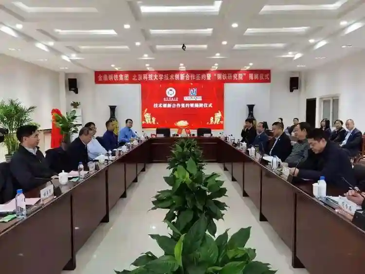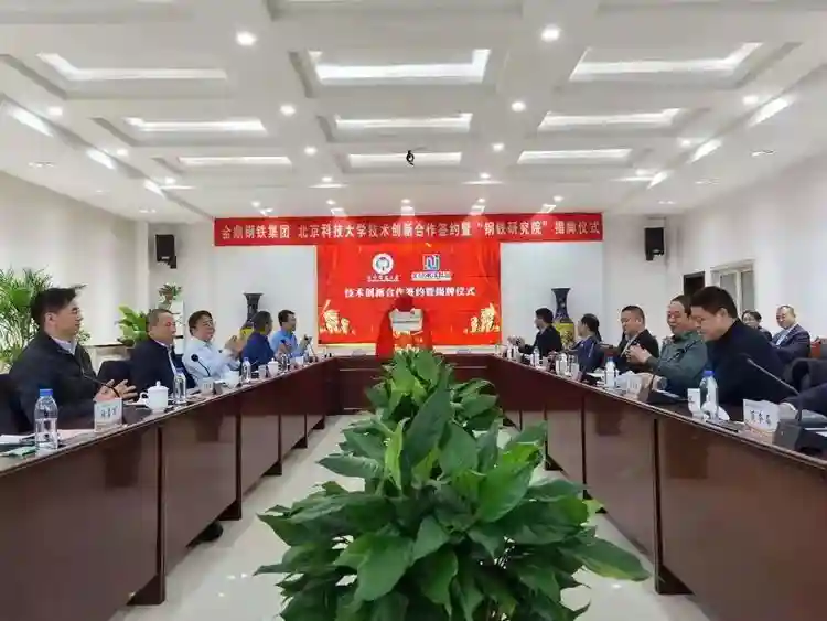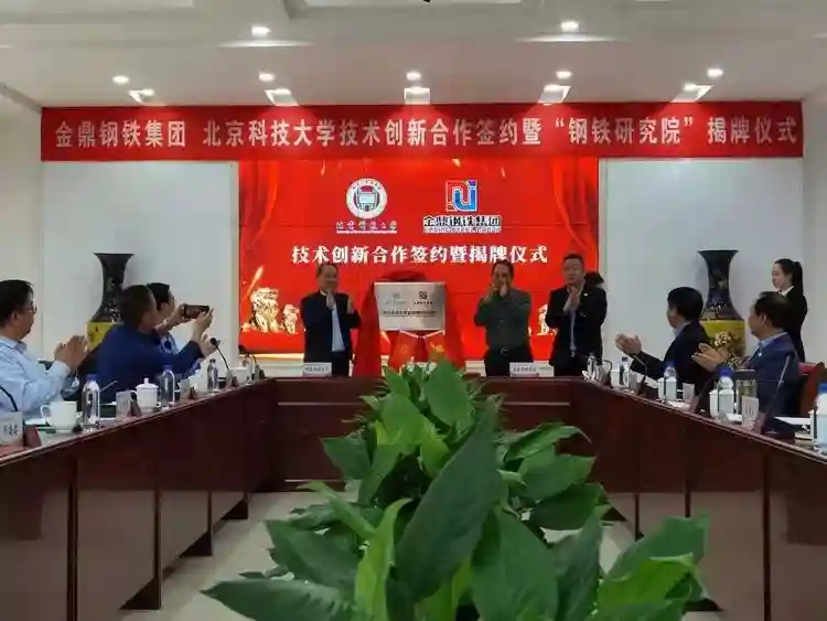 12月15日上午,北京科技大学与金鼎钢铁集团联合成立的“北京科技大学金鼎钢铁研究院”在武安金鼎钢铁集团正式揭牌。武安市委常委、副市长祁有山,金鼎钢铁集团董事长王建军,金鼎钢铁集团总裁陈利涛,金鼎钢铁集团党委副书记、工会主席、副总裁魏考增,金鼎钢铁集团副总裁肖为占,金鼎钢铁集团总工程师石俊杰,北京科技大学党委常委、副校长王维才,北京科技大学工程技术研究院党委书记陈雨来,北京科技大学工程技术研究院院长何安瑞,北京科技大学钢铁共性技术协同创新中心副主任孙彦辉,北京科技大学工程技术研究院副院长张勇军,北京科技大学能源与环境工程学院教授苏伟共同出席揭牌仪式。武安市商务局、环保分局、自然资源和规划局、行政审批局、应急局、发改局、科工局、上团城乡有关负责同志也出席了会议。