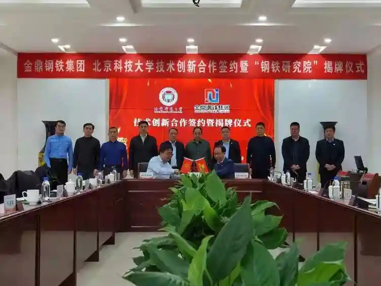 金鼎钢铁集团总裁陈利涛和北京科技大学工程技术研究院党委书记陈雨来代表双方签约