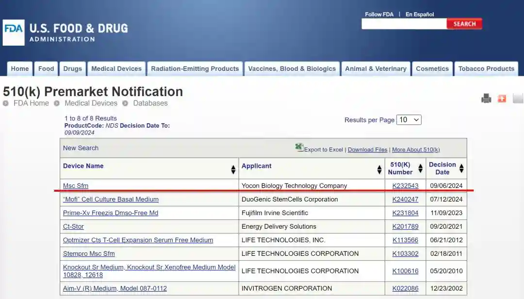 近日,友康生物的间充质干细胞无血清培养套装在美国FDA的510(K)二类医疗器械注册获得批准,510(K)号K232543,是美国FDA发放的全球第2个,中国首个该产品的注册证。