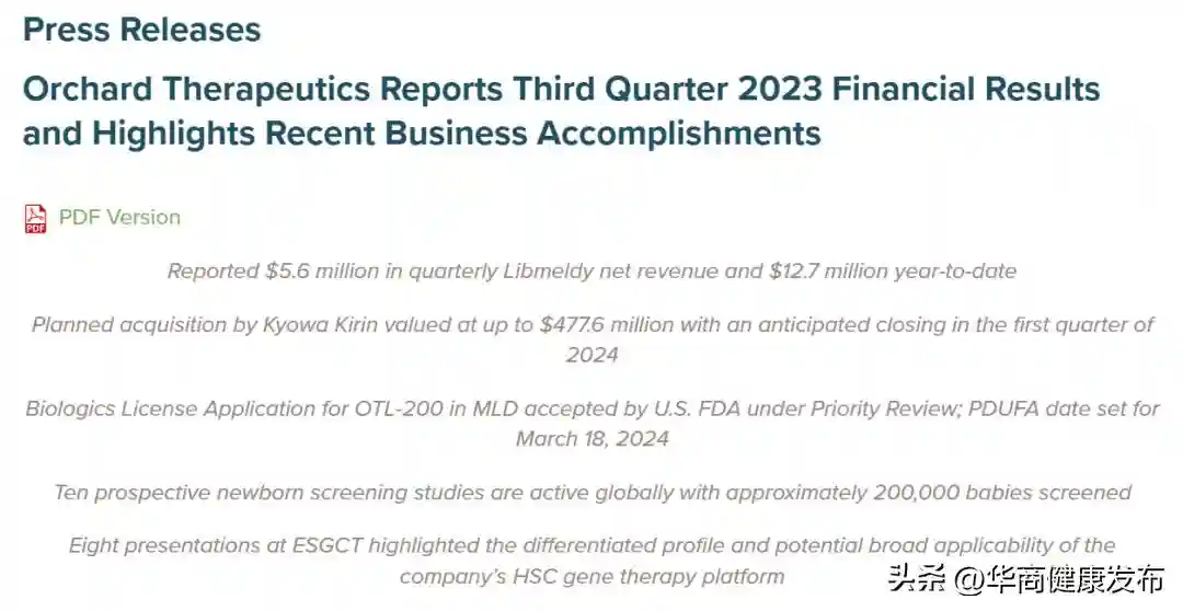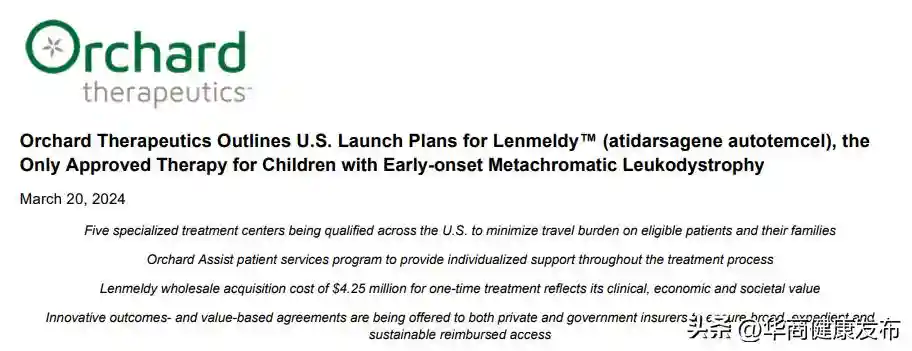OrchardTherapeutics的这款新药Lenmeldy(atidarsageneautotemcel,原名OTL-200)在3月18日刚刚获得美国FDA批准,用于治疗异染性脑白质营养不良(MLD),包括前症状性晚发婴儿型、前症状性早发青少年型或早期症状性早发青少年型的孩子——该病发病率,约为1/40,000[2]。