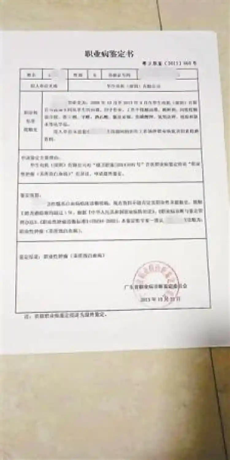 ↑患病工人鉴定书