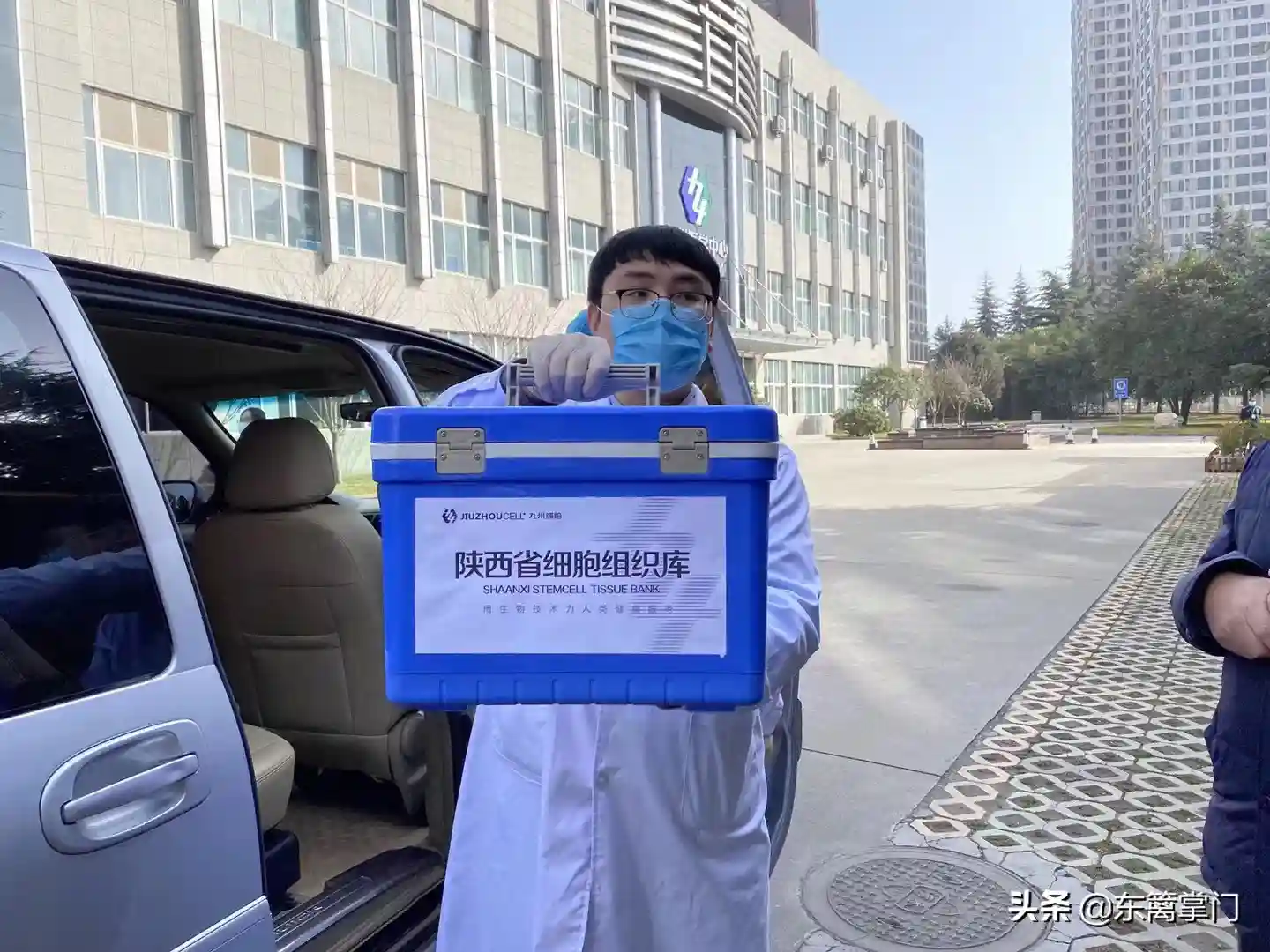 2月21日早上,在陕西九州干细胞科技产业园内举行了一个简短的出征仪式后,由陕西省细胞组织库派出的特别小分队携带干细胞制品从这里出发,经由高铁输送到对口支援的武汉大学人民医院,用于重症新冠患者的救治。