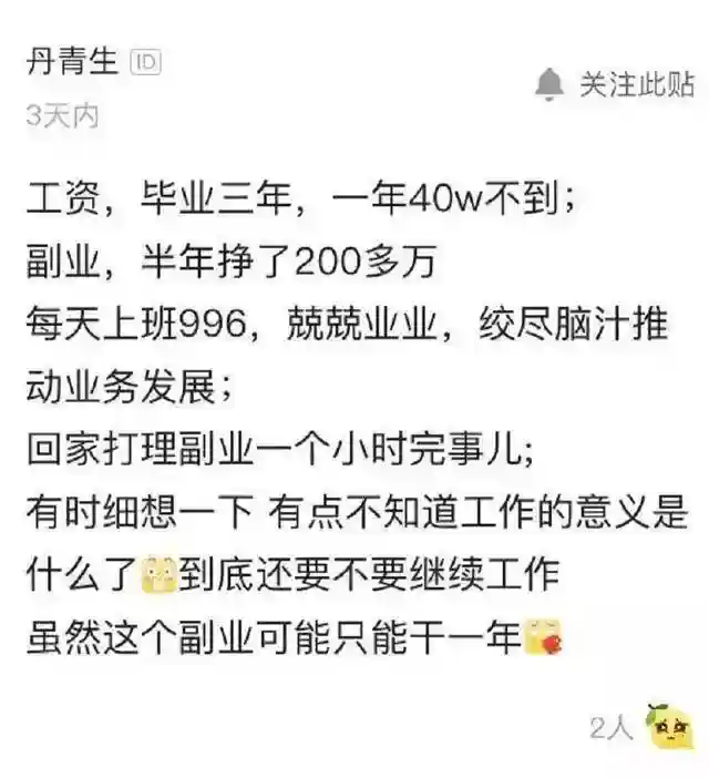 还有人说:我的副业是我工资的3倍