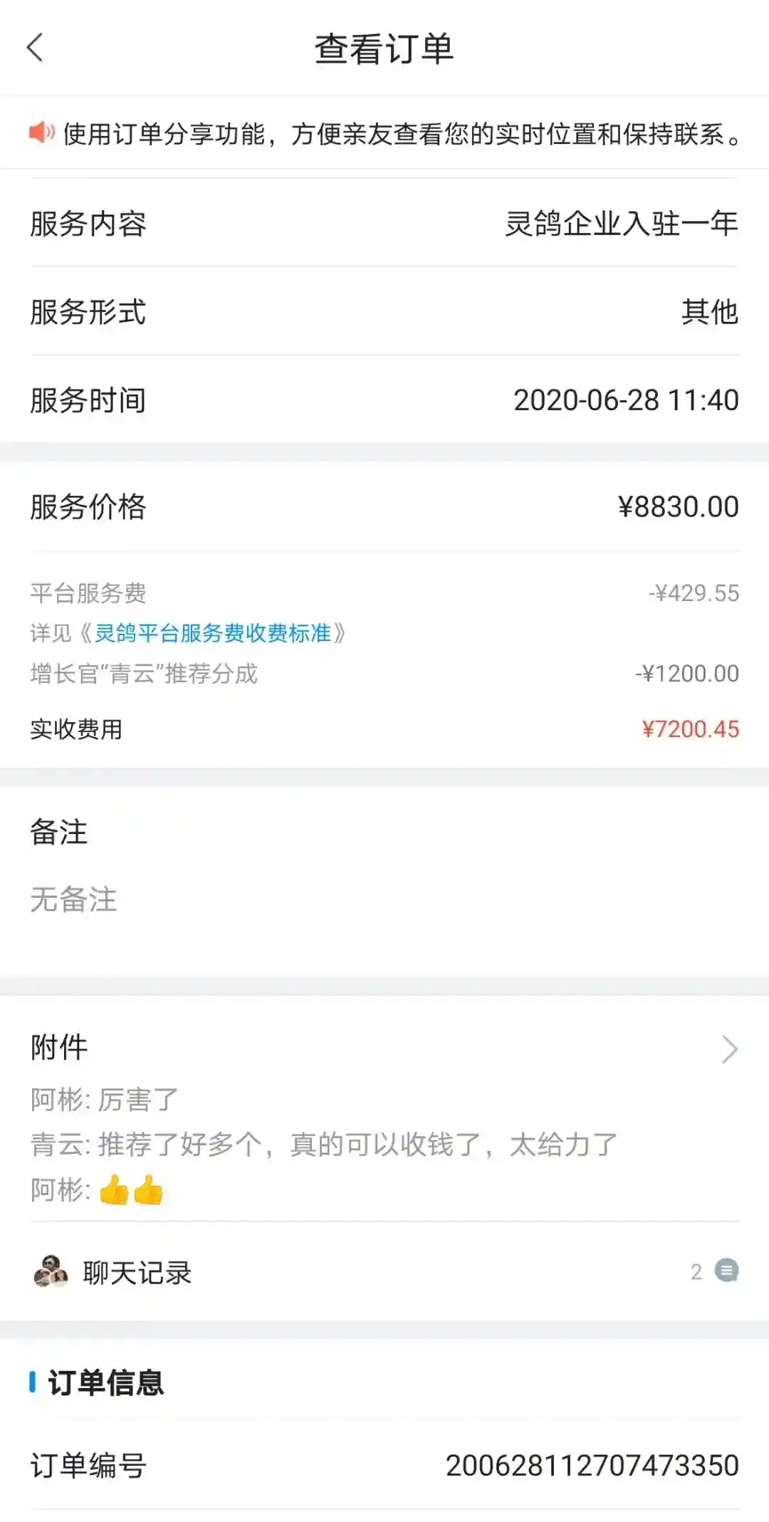 下面这个就是灵鸽平台一位增长官推荐成功后的订单收益。