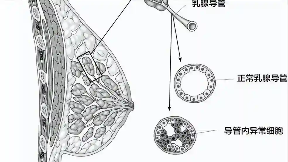 乳腺导管内原位癌是一种以上皮细胞明显增生为特征肿瘤性导管内病变,有伴有细胞异型性的可能,且病变比较局限,一般在乳腺导管终末小叶单位内,并未突破基底膜,但是还是有进展为浸润性乳腺癌的可能。
