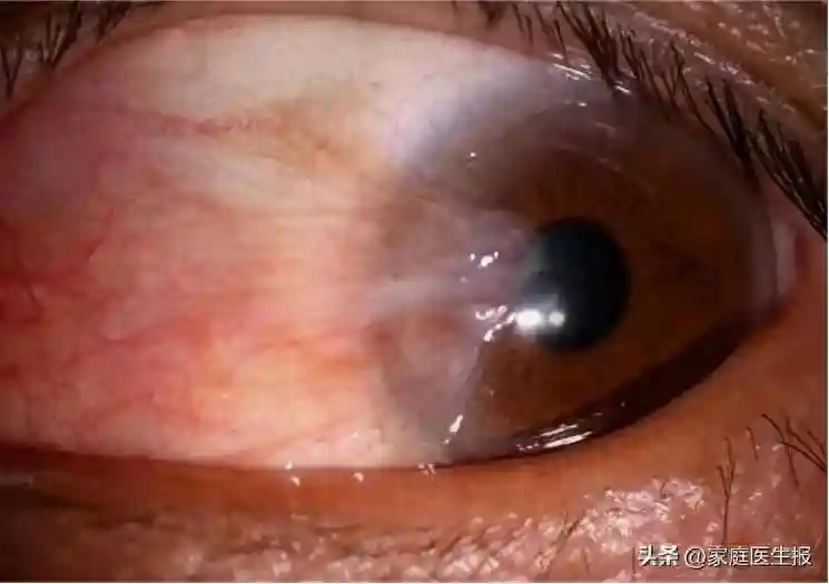 在稳定期,患者一般无任何不适,但变性组织会影响外观。如果头部侵入角膜内范围较大,还会影响角膜散光或遮挡瞳孔,从而影响视力。