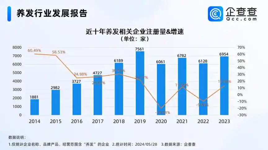 企查查数据显示,我国现存养发相关企业3.7万家,近十年其注册量整体呈增长态势