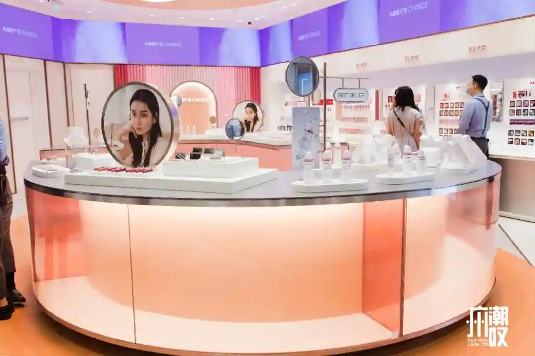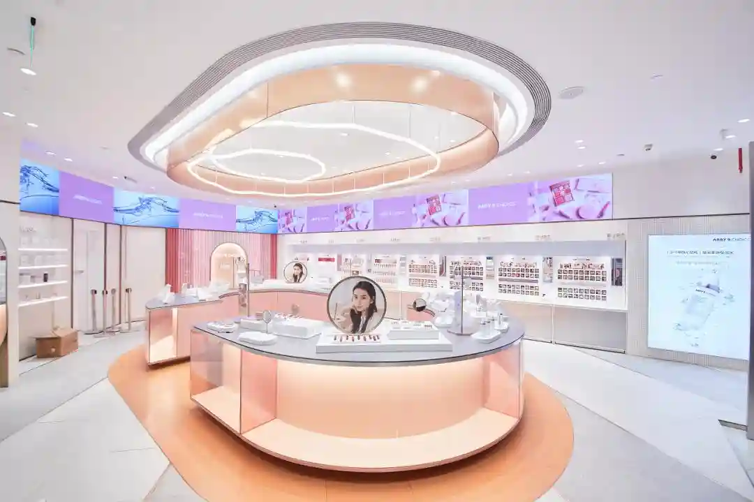 U型玻璃柜台摆放了从护肤到彩妆的一系列产品,就算你是第一次的小白,也可以在U型柜台上清晰明了GET护肤彩妆全套流程。