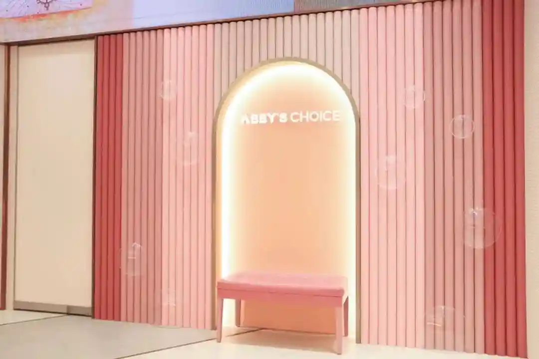 『超大打卡墙,进来变少女!』进门就是大面积的“ABBY粉”,还有纯净天空淡蓝色点缀,少女感爆棚出片率100%!