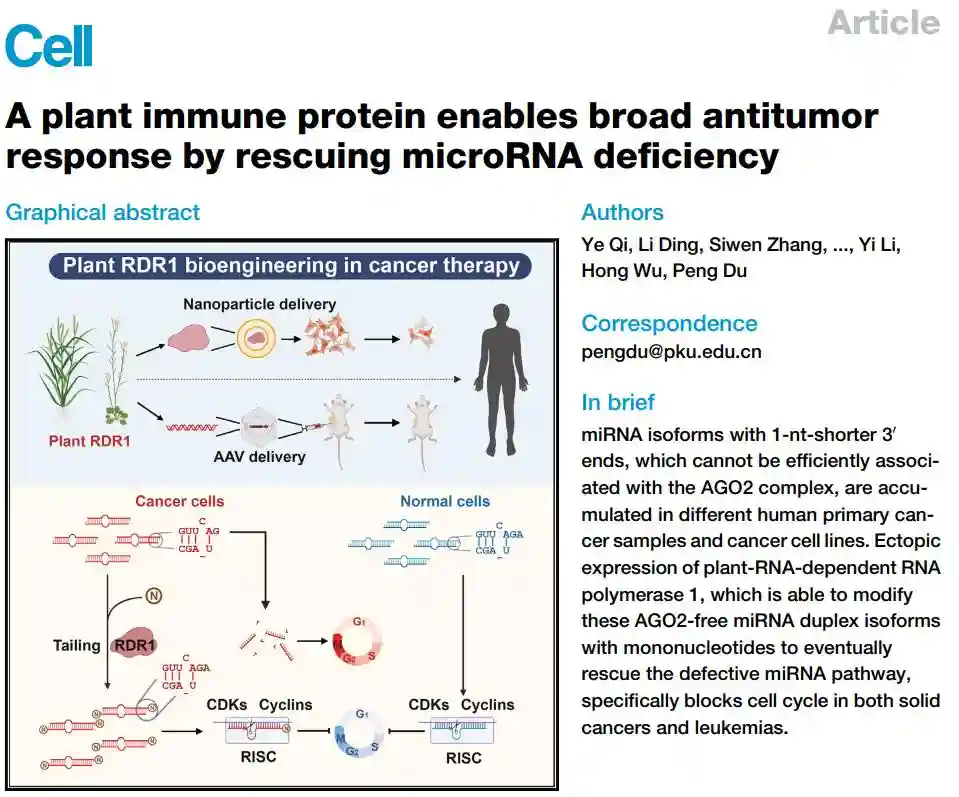 在齐烨的不懈努力下,他的研究终于开始取得突破,历经三年时间,他终于啃下了这块“硬骨头”,做出了引领世界的首个源头创新发现——通过植物蛋白修复肿瘤细胞中特异存在的异常小RNA来进行广谱抗癌。项目根据植物免疫蛋白RDR1驯化肿瘤的原创性理论,结合成熟的基因载体,破解了肿瘤治疗中外源大分子递送难的关键问题,打造了无耐药肿瘤驯化治疗的新范式。
