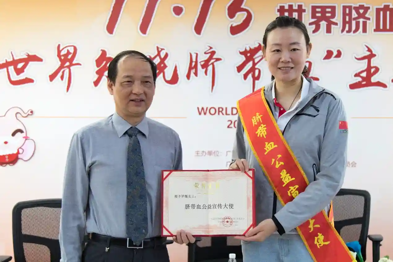 罗微接受了担任“脐带血公益宣传大使”的证书