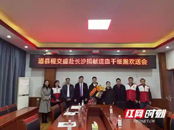 红网时刻新闻2月19(通讯员何鹏)2月18日是春节后的第一个工作日,湖南省道县红十字会为道县第5例配型成功捐献造血干细胞志愿者程交盛赴湖南省人民医院捐献造血干细胞举行欢送会。县人民政府副县长朱龙等出席欢送会。