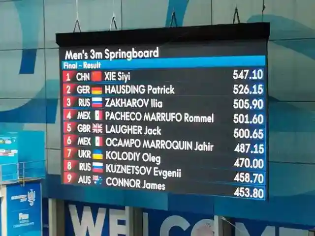 ▁▂▃2017年世界游泳锦标赛第七个比赛日,男子单人三米板决赛中,中国选手谢思埸以547.10分战胜德国选手帕特里克·豪斯丁(526.15分),为中国队再下一城。另一位中国选手曹渊获得第10名。在稍早结束的女子双人花样游泳自由自选决赛中,中国队蒋文文/蒋婷婷不敌实力强大的俄罗斯对手,获得亚军。目前中国获得6金6银1铜,在短暂被俄罗斯超越后,谢思埸的金牌让中国队重回奖牌榜首。