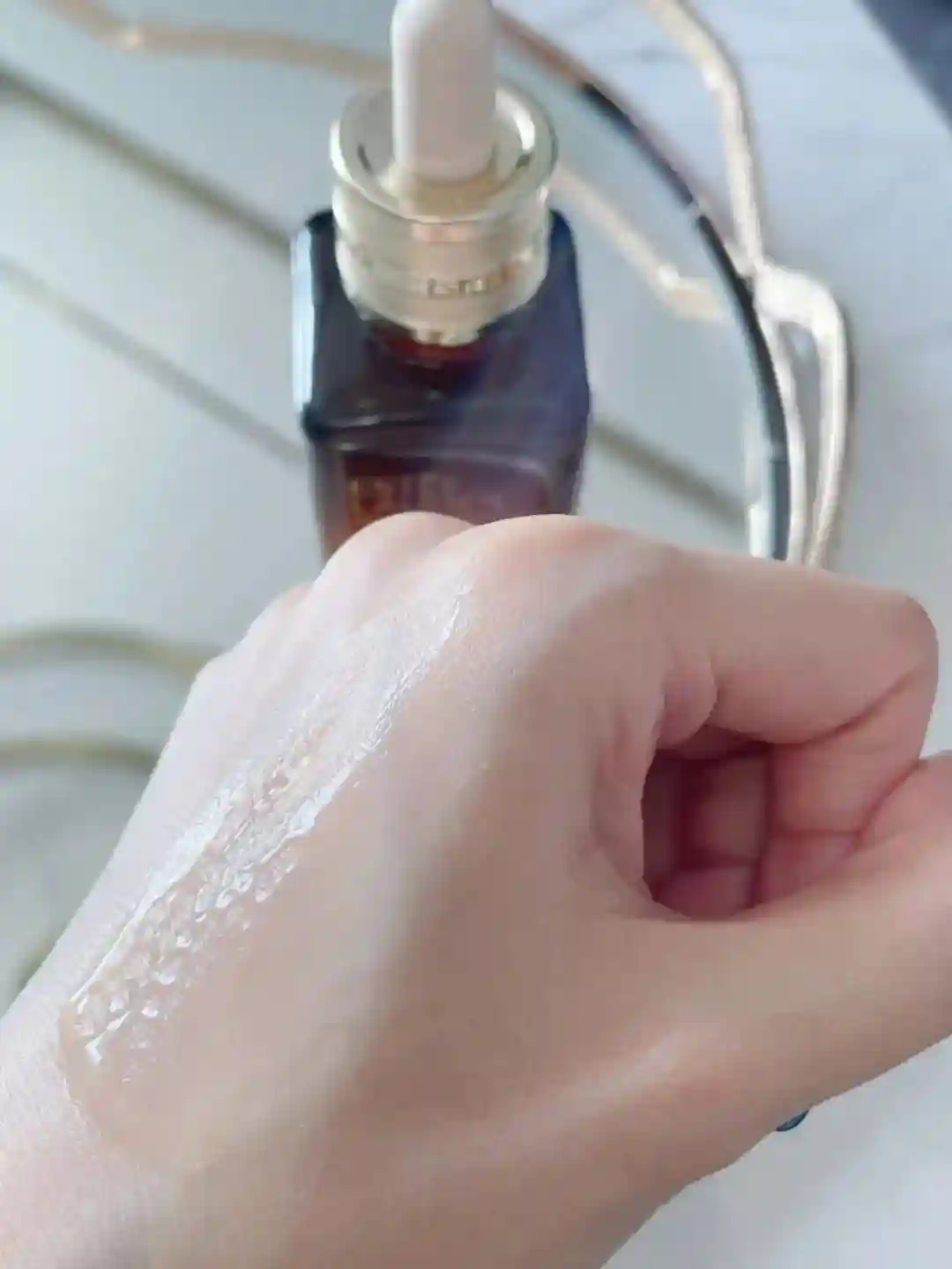 这款精华是水润质地,好吸收不黏腻。让皮肤水润细腻,摸起来软软嫩嫩的。一次一管即可,上脸很好推开,可以学习官方给出的使用方法,在脸上沿着肌肤轮廓画“心”来按摩,帮助吸收。冬天皮肤干,上妆前可以先用精华,能让妆容更加服帖,不卡粉哦~
